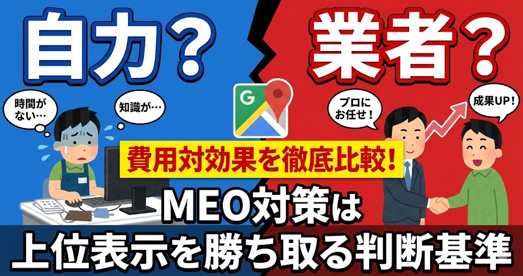 MEO対策は「自力?業者?」費用対効果を徹底比較!上位表示を勝ち取る判断基準